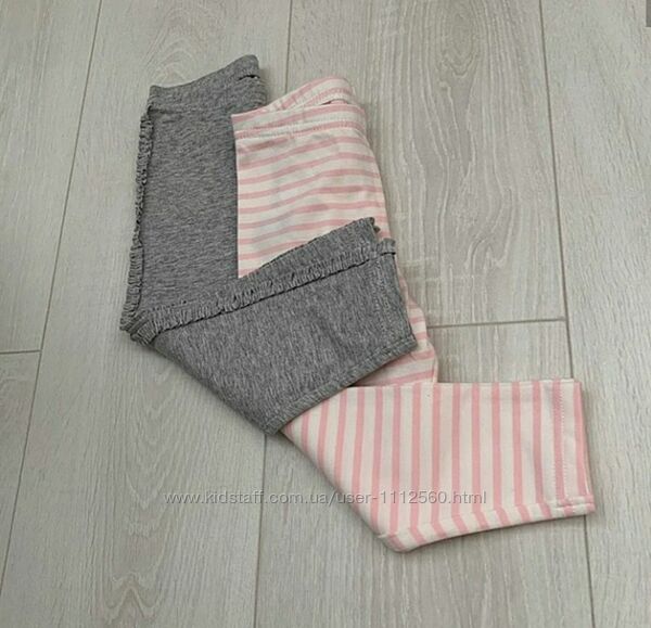 Лосины для девочки Carters. Состав 93% хлопок, 7% эластан.Розовые в полоску, на серых по бокам нашивки с оборками