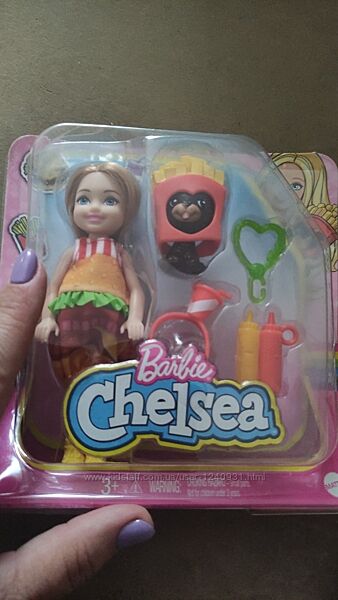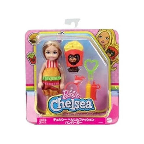 Подробное описание: Лялька Барбі Челсі, ігровий набір, у костюмі бургера з твариною та аксесуа