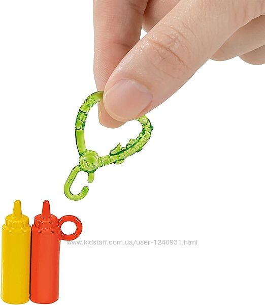Надихніть на перевдягання та історії про дружбу з ляльками Челсі в тематичних костюмах!Ця одягнена лялька Челсі одягнена в костюм гамбургера з чарівним принтом і «салатовими» рюшами.Пов’язка на голову з чашки газованої води та жовті черевики доповнюють її милий образ, а друг-цуценя в відповідному костюмі додає веселощів.Аксесуар-брелок-брелок дозволяє дітям закріпити ляльку Челсі на рюкзаку чи одязі та брати з собою задоволення від одягання куди завгодно!Дітям віком від 3 років сподобається розігрувати великі історії з ляльками Челсі в милих костюмах. Вони можуть зібрати їх усі, щоб отримати ще більше натхнення від гри!430