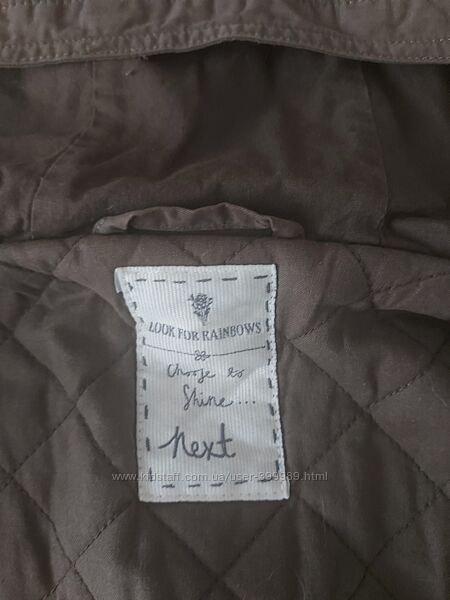 Очень стильная классная куртка парка Некст. Ткань котон. Цвет хаки, реально цвет получился на фото 1. На рукавами, спине, плечах кружево. Внутри утеплена, стёнганая. Застегивается на змейку металлическую, сверху пуговицы. Можно затянуть кулиску. Карманы все рабочие. Состояние идеальное.Замеры :