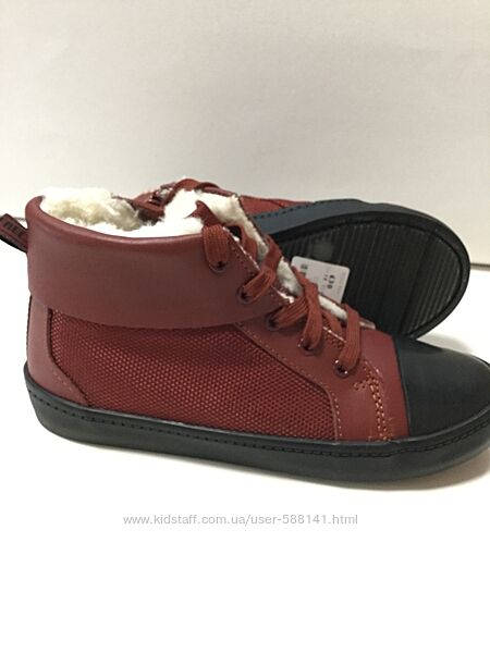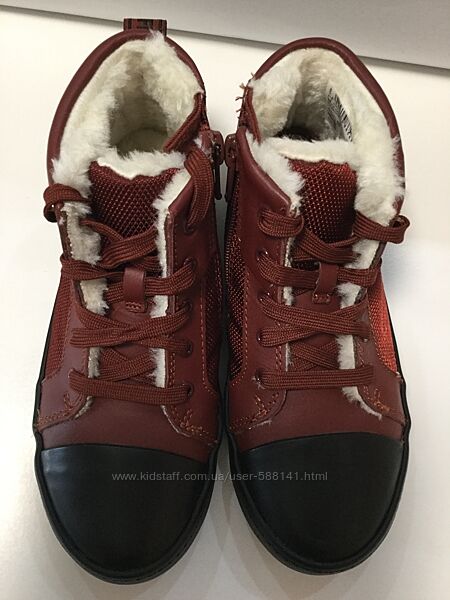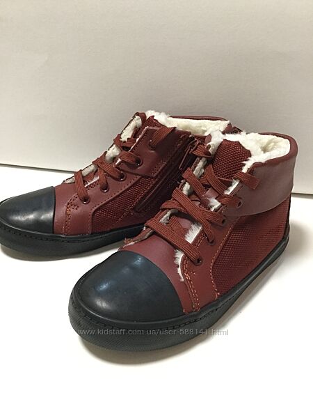 Clarks City Peak Brick зимние ботинки хайтопы размер 32, 33.5. ОригиналСнаружи качественная натуральная кожа и водоотталкивающий текстиль темно бордового цвета