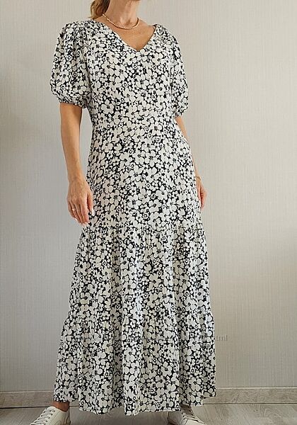 Подробное описание: Длинное цветочное ярусное платье оверсайз F&F
