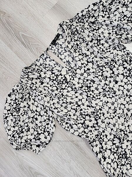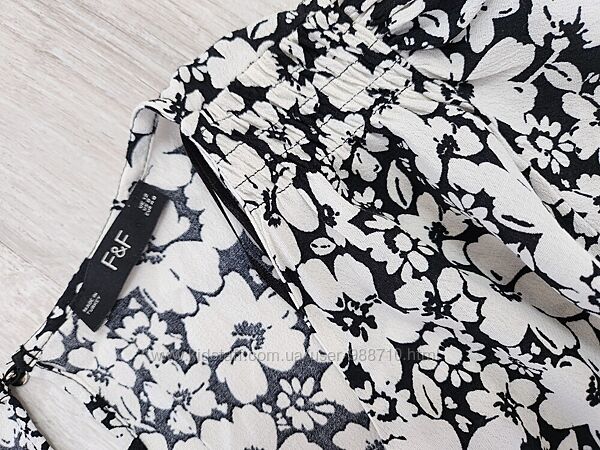 Комфортное ярусное черное белое цветочное платье миды оверсайз F&F10-12,M-L
