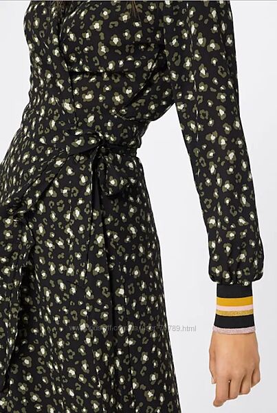 Платье Eksept миди размер L с запахом по талии, трикотажные манжеты. Запах только по талии, не по всей длине платья. Состав: 100% полиэстер Замеры: Длина по спинке 126 см ПОГ 50 см (грудь регулируется запахом) ПОБ 54 см Талия 42 см (не регулируется запахом).