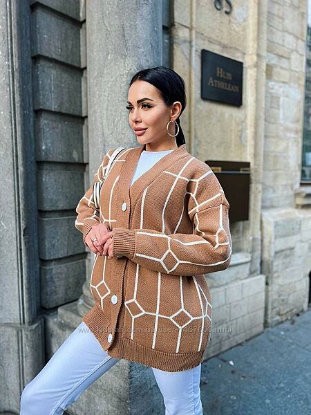 Дуже стильний кардиганчик з контрастним візерунком▪️Арт. SUNSET