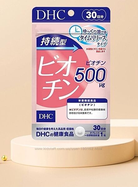 DHC Biotin — харчова добавка на основі біотину повільного вивільнення. Це запатентована форма біотину, більш вдосконалена та ефективна. Добавка потурбується про красу та молодість шкіри, нормалізує її рН рівень, зміцнить волосся та нігті, і так само збільшить швидкість їхнього росту. Крім цього допоможе знизити рівень цукру в крові та нормалізувати роботу нервової системи, покращить вироблення власного колагену в тканинах.