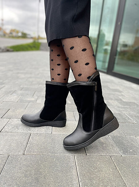 Виробництво України. Матеріал - натуральна шкіра+замша. Усередині хутро натуральне. Висота підошви 2/4 див. Висота черевика від п´яти 21 см. Обхват черевика 33 див. розміри: 36р. - 23 см 37р. - 23,5 см 38р. - 24 см 39р. - 25 см 40р. - 25,5 см. Обмін і повернення можливе (за рахунок покупця) Є накладка Новою Поштою (з передоплатою 150 грн.) УкрПошта накладка (100гр. Передоплата).Предложения от магазина