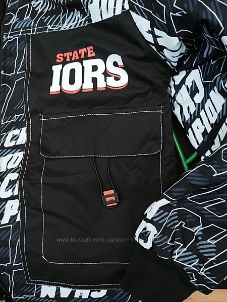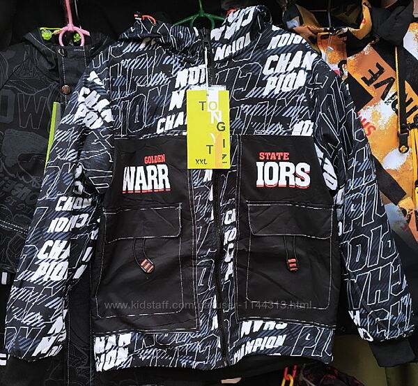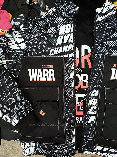 Двохстороння куртка на хлопчика приблизно на зріст від 146 до 170. У наявності є тільки з помаранчевим надписом. Застібка на блискавці, трикотажний манжет-резинка на рукаві. У наявності 2 зовнішні та 2 внутрішні кишені. Спинка подовжена. Капюшон стягується.Зовнішня тканина: плащівка.