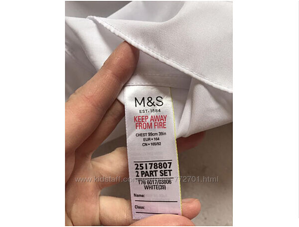 Подробное описание: Унисекс. Школьная белая рубашка c длинным рукавом Marks & Spеncer. 164