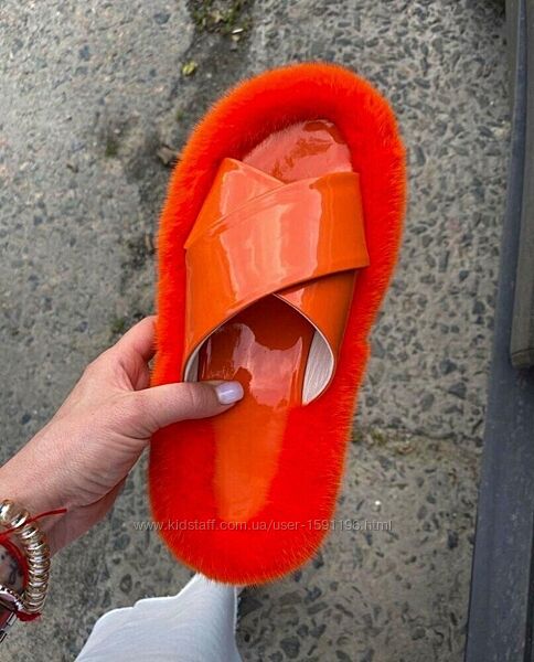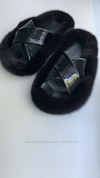 Шлепанцы из натурального меха норки, стелька-натуральная натуральная кожа. Верх из лаковой натуральной кожи. Размер 36, 37,38 в наличии.Остальные размеры под заказ. Уточняйте свой размер стопы.