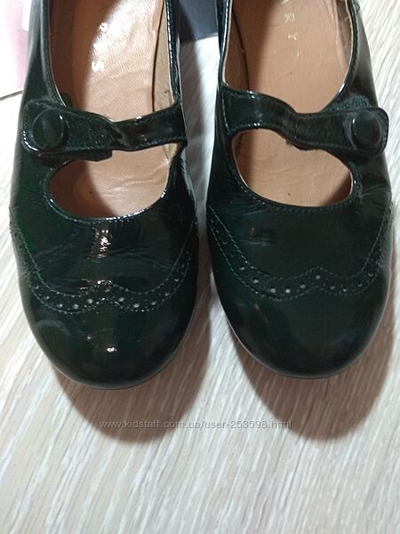 Туфельки шкіряні Clarys 34р. 22,5 см.Оливкового темного кольору, лаковані