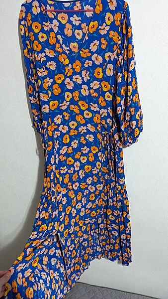 Платье NEXT миди размер L в отличном состоянии. Впереди по бокам завязки, два разреза. Состав: 100% вискоза. Замеры: Длина по спинке - 127 см ПОГ - 50 см ПОБ - 58 см и расширяется книзу.