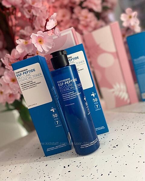 Біотонір для обличчя з пептидами Fortheskin Egf-Peptide Bio-Clinic Essencial Toner наповнює шкіру енергією, робить її пружнішою й еластичнішою, розгладжує зморшки та підтягує шкіру.