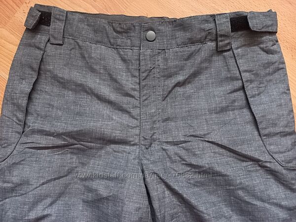 Теплые брючки для мальчика , ткань плащевка. На поясе штанов, по бокам липучки для утяжки . Брючки ровные, внутри есть снегозащитные практичные резинки на липучках и кнопке на штанинах снизу, которые препятствуют попаданию снега и холода.р.164, цвет-серый.