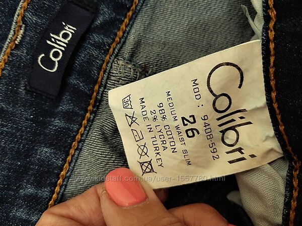 Подробное описание: Colibri стильні котонові джинси сині слими звужені з кільцями на штанинах