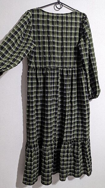 Очень легкое и комфортное платье New Look миди размер L. Вырез квадратный, рукава на резиночке, внизу оборка. Состав: 80% полиэстер, 15% коттон, 5% нейлон.