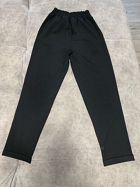 Брючки на дівчинку чорного кольору, стан ідеальний, як нові, розмір по бірці 146 см. Талія на резинці, по бокам пришитий поясок, є дві кишенькі, знизу манжет. Тканина дуже приємна на дотик, хлопок, зовсім трішки тягнуться. Довжина 84,5 см, крок 59 см, талія резинка 23,5 см тягнеться до 36 см, бедра 46 см, посадка (гоубока) перед 28 см, посадка зад 37 см.Другие объявления продавца