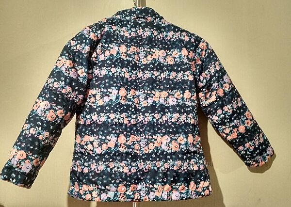 Одна курточка красивого персикового цвета, другая - темно-синяя в разноцветные цветочки.