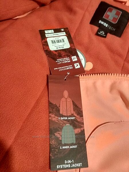 Демисезонная термо-куртка 3 в 1 Swiss Tech kids.По сути это 2 полноценные курточки, которые можно носить или по отдельности, или в более прохладную погоду пристегнуть одну к другой ( для этого есть все необходимые крепления) и получить 3 в 1.