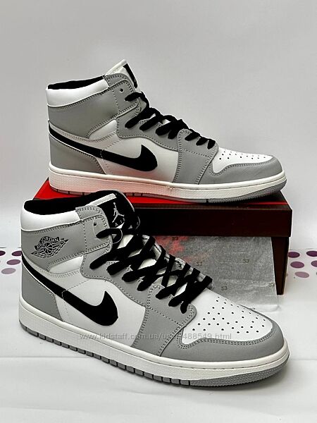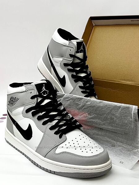 Подробное описание: Кросівки чоловічі Nike Air Jordan 1, сірі з білим, шкіра