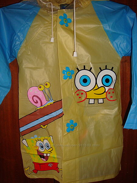 Плащ бу, есть нюанс(фото 2-3) - царапина 1 шт спереди внизу на Спонж Бобе На кнопках, капюшон с козырьком, дополнительно можно завязать. Подойдет как мальчику так и девочке. рукав от шейного шва - 46,5 см, длина плаща от шейного шва - 59 см ПОГ по подмышкам - 34 см Оплата на карту Приватбанка 100%. доставка Укрпочта , Новая Почта -за ваш счет. Обмена нет.