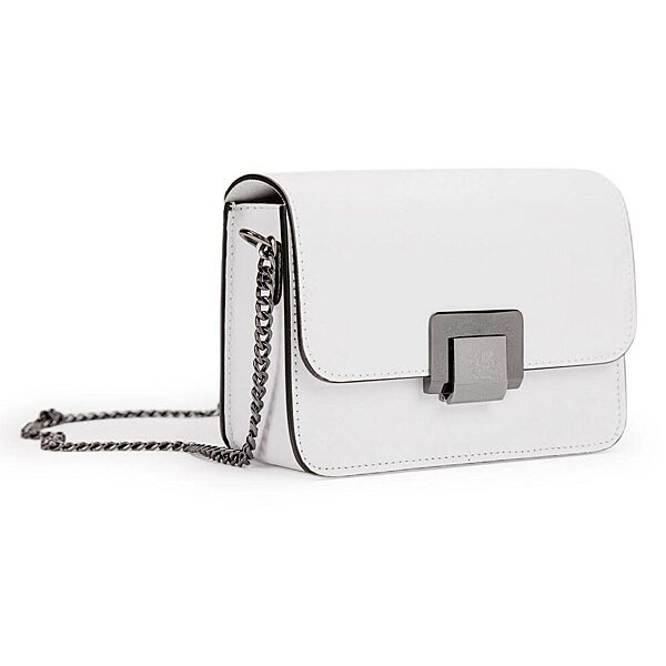 Сумочка белая производства Италия из натуральной кожи через плечо, на цепочке, кроссбоди.Размер: 17 x 12 x 7см.