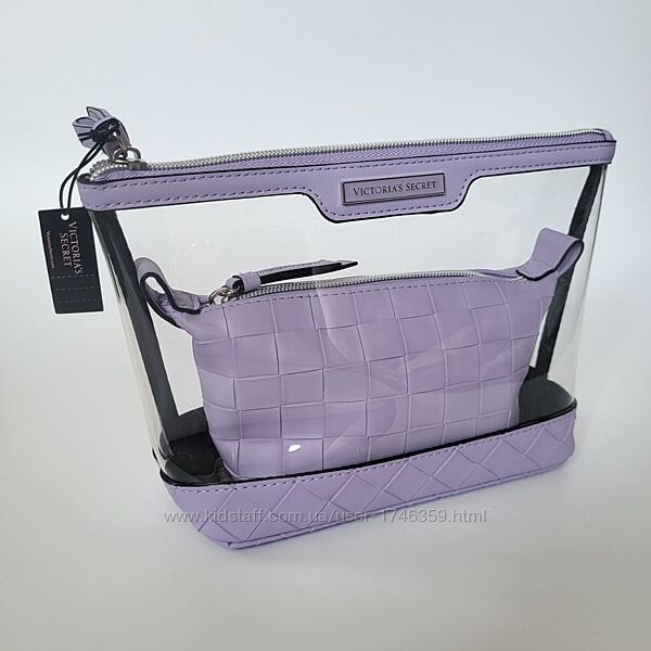 Косметичка Victoria´s Secret 2 в 1 AM/PM Beauty Bag Duo Pouch Liliac.- Середня прозора косметичка.