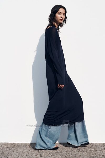 Подробное описание: Трикотажное платье миди Zara, темно-синее - S, M