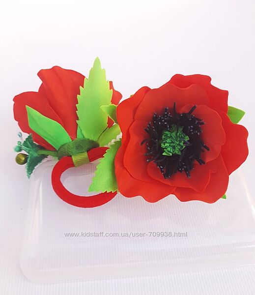 Резинки маки чудово підійдуть до вишиванки. Повністю ручна робота, зроблені з фоамірану. Розмір квіточки 7 см. Вартість 120 грн./ параДругие объявления продавца