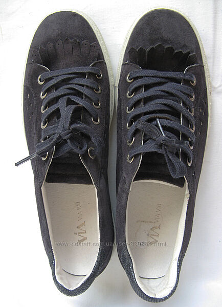 464. Снікерси, кросівки кеди з натуральної замші голандського бренда "Via Vai" в ідеальному стані без недоліків, може міряні, може, раз взуті - стан нового взуття. Устілки білосніжно чистіЗасновником голландського взуттєвого бренду VIA VAI є Руд Пексерс. Цей талановитий дизайнер завжди мав любов до Італії, до італійського дизайну взуття. Після того, як кілька років прожив в Італії і працював на місцевих фабриках, він вирішив почати розвивати свій власний бренд. Жінки були підкорені його взуттям. У моделях цього бренду поєднується голландський дизайн з італійською елегантністю. Всі матеріали, включаючи чудову добре виготовлену натуральну шкіру, натуральні барвники, і відмінні підмітки - все це робиться спеціально для VIA VAI в Італії. А саме взуття відшивається найкращими дизайнерами в Голландії.