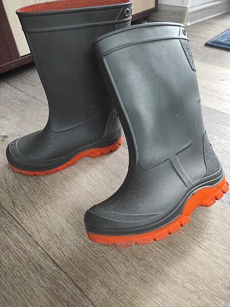 Гумові чоботи на хлопчика, темно-темно зелені на помаранчевій підошві. Зараз вже малі. Носили мало. Устилка 18 см, на фото видно незаношеність. Якість бомбезна, без пошкоджень і подряпин. Коробки немає, покупались без неї. Виготовлено ТМ Непоседа. Розмір вказаний 27-28.Додаткові фото по запиту.