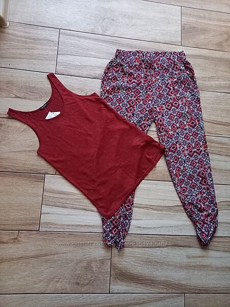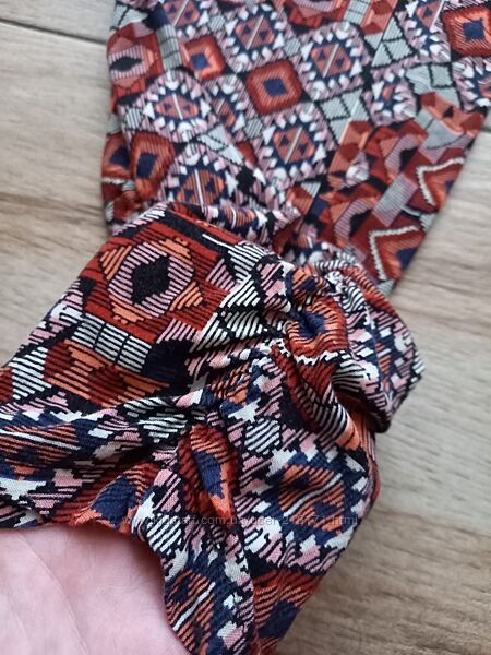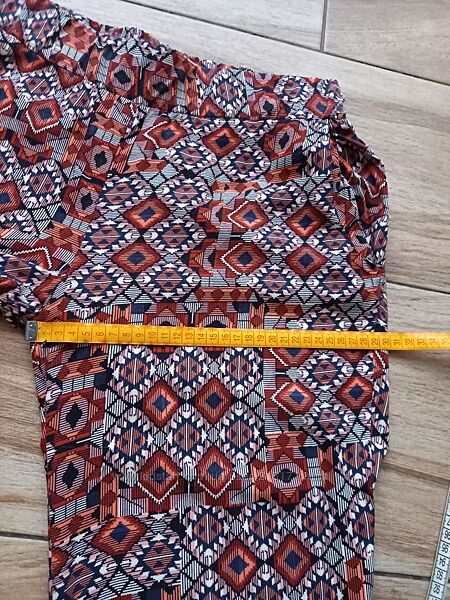 Без дефектов. Бирки с составом нет. Ткань, скорее всего, вискоза. Нежная, дышащая, очень приятна к телу. Не тянется. Длина 94\70, снизу чуть присобраны. Пояс-резинка, тянется.