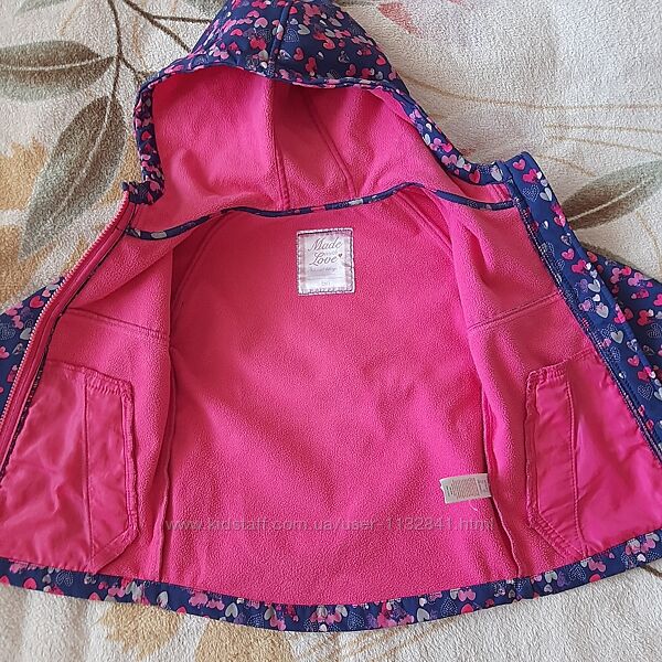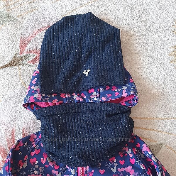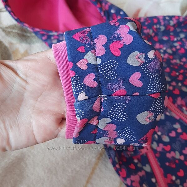 Подробное описание: Куртка демисезонная софтшел на флисе 98 104 см синяя сердечки розовые