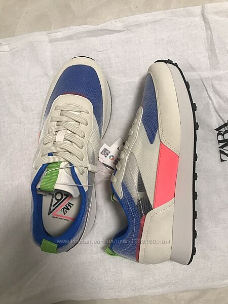 #zara Кросівки з сіткою ZARA Кросівки з кольоровими контрастами і сіткою. На шнурках. Потягніть за язичок ззаду, щоб легко одягати та знімати. Гумова підошва. STARFIT® TECHNICAL INSOLE FOAM: гнучка функціональна устілка з пінополіуретану. Комфорт, амортизація та довговічність. Розмір 38;39