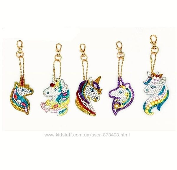 Набір для прикрашання 5 брелоків Unicorns 🦄 за допомогою алмазних камінців (двосторонні).Такі брелоки можна дарувати друзям, вішати на сумку, рюкзак чи на ключі.