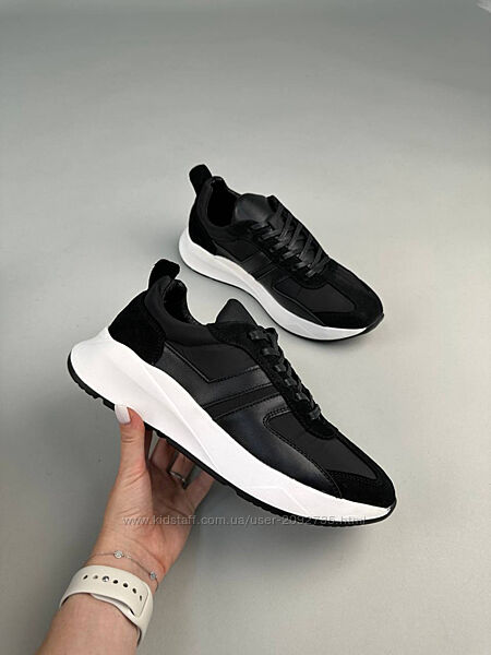 Кросівки чоловічі шкіряні чорні на білійАртикул: 2400
