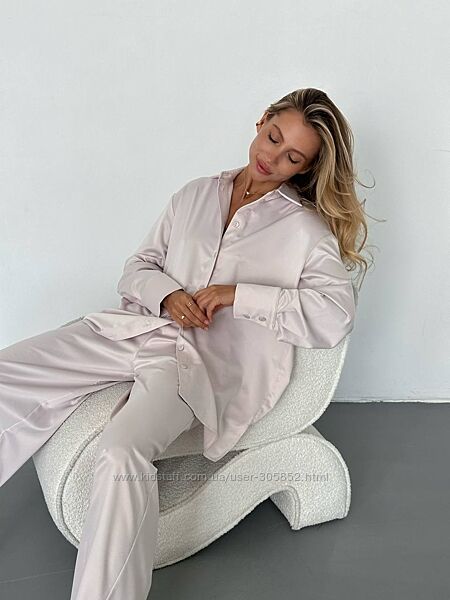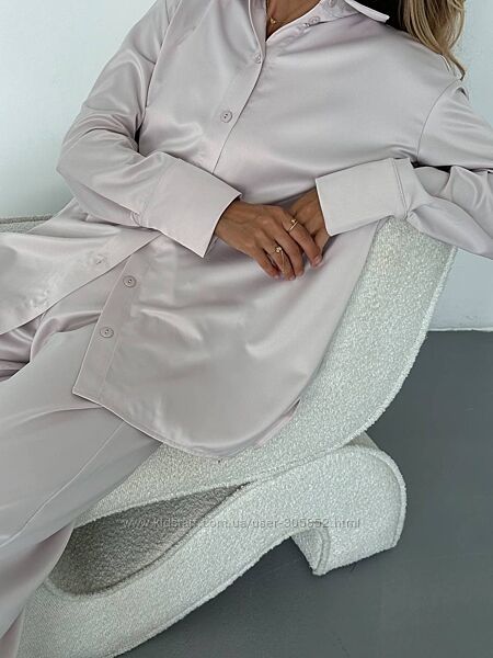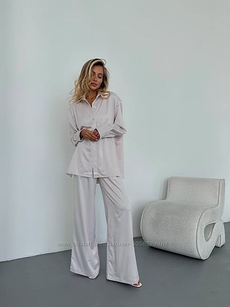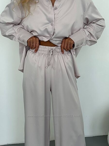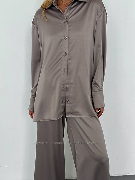 Подробное описание: Сатиновий костюм сорочка штани перлинний, тауп