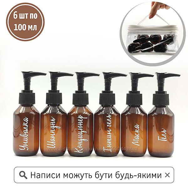 Дорожній набір диспенсерів, 100 мл пластик 6 шт.