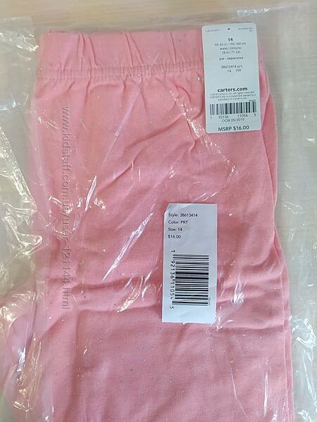 Нові трикотажні лосіни Carters для дівчинки 14 років, зріст 150 см.Одні рожево-персикового кольору з блискавками.