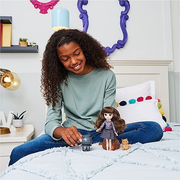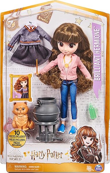Испытайте бесконечные приключения с куклой Гермиона Грейнджер! Эта великолепная 20-сантиметровая кукла с двумя разными нарядами и пятью аксессуарами идеально подходит для игр и разыгрывания историй! Милые детали лица, мягкие и очень длинные вьющиеся волосы и пять точек артикуляции оживляют этого любимого персонажа.Великолепная Гермиона готова к бесконечным захватывающим приключениям с двумя нарядами на выбор! Она приходит в своей розовой толстовке с капюшоном и джинсах с радужным поясом и съемными кроссовками, как в фильме «Узник Азкабана», или вы можете переодеть Гермиону в форму Хогвартса с свитером и юбкой Гриффиндора! Вручи волшебную палочку Гермионе и заставь свою куклу варить зелья над котлом. затем притворитесь, что наполняет их бутылкой с зельем — Гермиона действительно может держать бутылку! Наденьте ожерелье Маховика времени на Гермиону и воссоздайте культовые сцены из фильмов; кроме того, очаровательный домашний кот Гермионы Косолапсус может присоединиться к веселью!