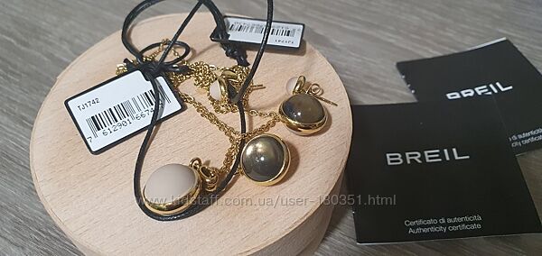 Вишуканий комплект з кульчиків, цепочки та підвісу від всесвітньо відомого бренду годинників та елітної біжутерії Breil, ІталіяМатеріал: сталь, колір жовте золото, напівдорогоцінне каміння.