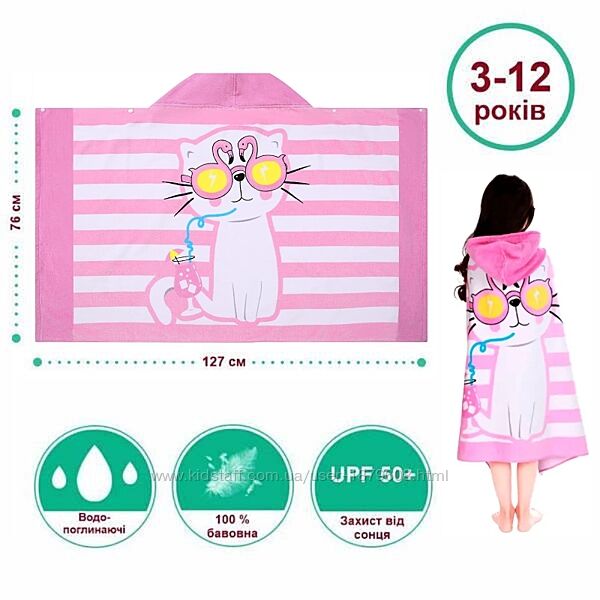 Детское Полотенце с Капюшоном Котик - 100 хлопок махра