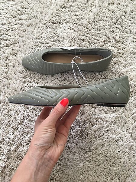 Стильні балетки, дуже гарні та зручні, мягенькі. Розмір 36, як на мене трішки маломірять, на 35,5/35. На вузеньку ніжку.Довжина устілки повністю - 24 см але ніжка до самого носка не сідає