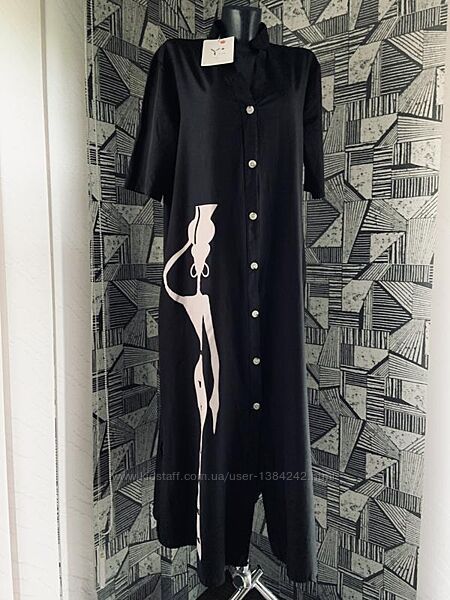 Дизайнерское невесомое платье- рубашка в стиле бохо с царицей Нефертити от знаменитого Лондонского дизайнера /Yijia Lee/ родом из Китая, талантливая обладательница Гран-При и победительница в номинации молодых дизайнеров 2021 /GLOBAL YOUNG TALENT 2021/ /Yijia Lee Fashion Crossover London Designer Kingston University/ Новое с биркой. Бренд: YIJIA (от Yijia Lee) Размер по бирке: L/Oversize. (смело по замерам L/XL-2XL) Ткань: Креп- шифон. (Креп-шифон- это абсолютно натуральная воздухопроницаемая и гигроскопичная шёлковая ткань с % составом смесовых волокон из хлопка и вискозы.) Замеры изделия: Длина- 130см. Длина рукава- 30см. Ширина в плечах/плечё- 45/15см. Пог/Пот/Поб- 60/62/68см.