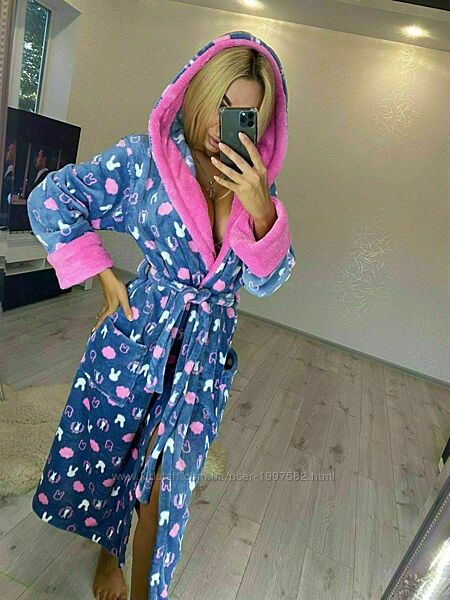 Розмір: універсал 42-46 за рахунок запаху, довгі підходять до 48 (під замовлення! халати з капюшоном хл(48-50) +50 грн, ххл (52-54) +70 грн!!!)