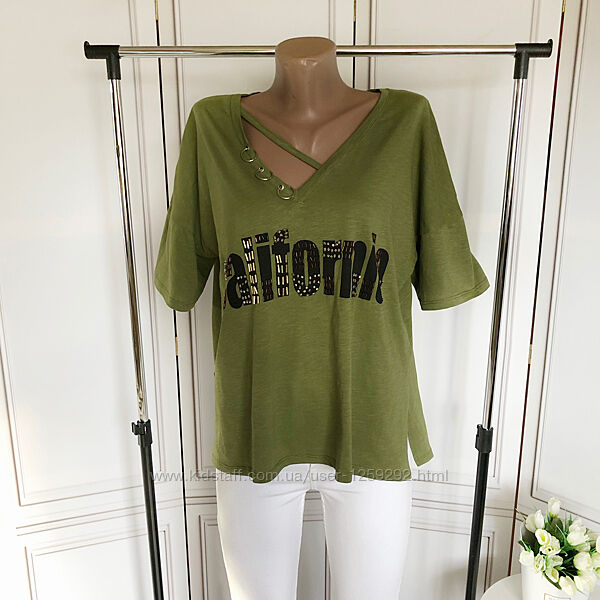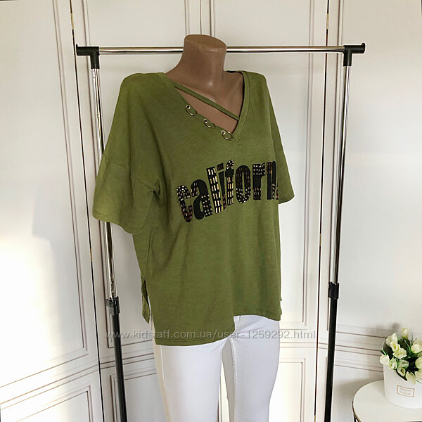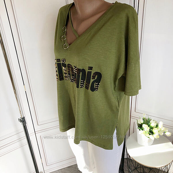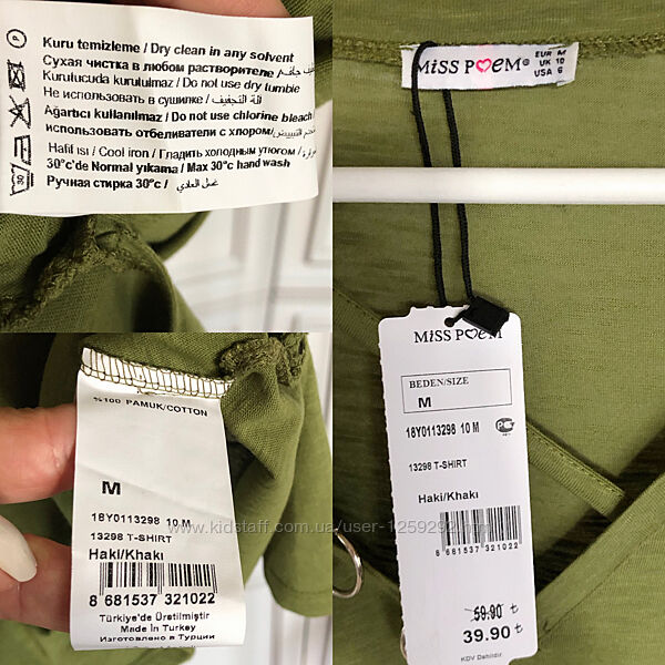 Футболка оверсайз Miss Poem, Турция Новая оверсайз футболка цвета хаки производства Турции размер указан М, идет на L также, как оверсайз Длина 59 ПОГ 58 ПОТ 57,5 Ширина по низу 63,5 Плечо 24+рукав 13,5/11( наружная и внутренняя части) Ширина рукава 18,5 100% котон,Турция