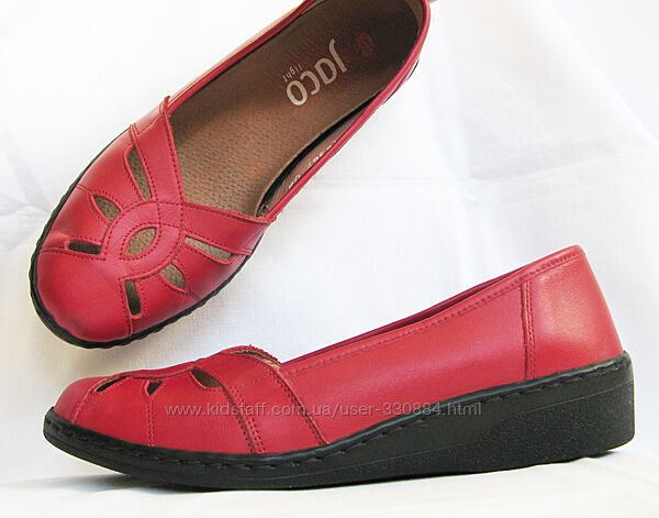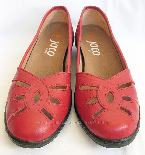 471. Комфортні м´які туфлі на літо німецького бренда "Jaco " в ідеальному стані: чисті устілки, без сторонніх запахів, підошва без зносу - може, пару раз взутіМатеріал верха - натуральна гладка шкіра червоного кольору, м´яка та еластична