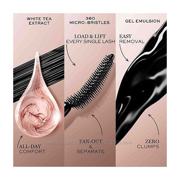 Туш для вій Idole бренду Lancome доводить, що прекрасні очі сяють не лише від щастя. За розкішним поглядом стоять дослідження та розробки: це засіб нового покоління. Інноваційна щіточка з еластомеру, 360 мікрощетинок у 250 розмірах, гелева емульсія та в 4 рази менше воску — все це зроблено для того, щоб ви одним легким рухом фарбували волоски від коренів до кінчиків навіть в куточках очей, підняли їх і додали розкішний об´єм.Особливості Lash Idole Mascara від бренду Lancome: