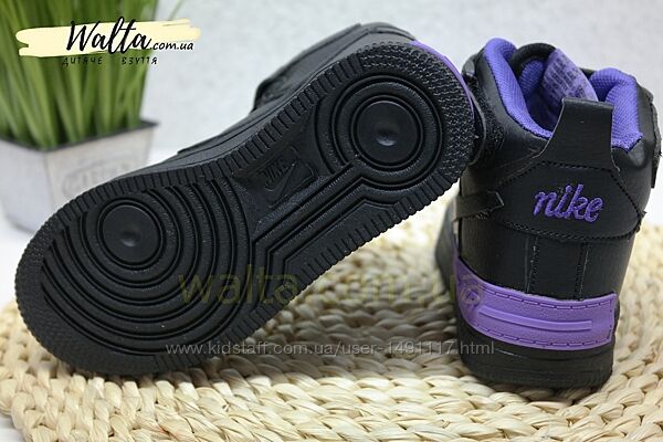 Подробное описание: 27-30р Nike Air Force найк реплика хайтопи чорні з фіолетовим дівчаткам