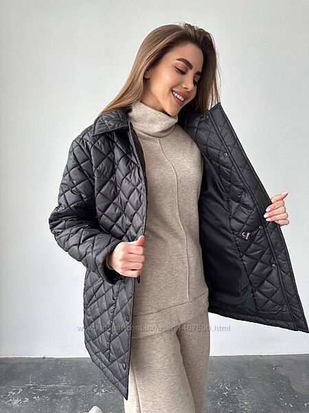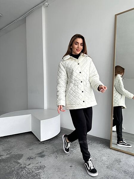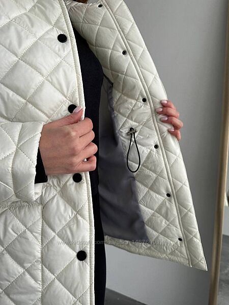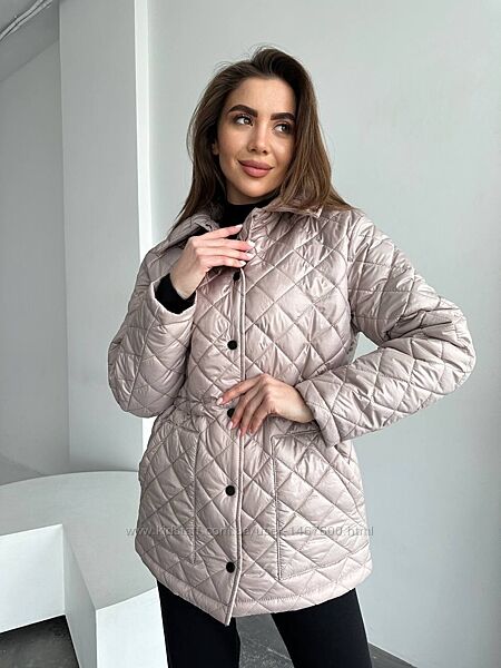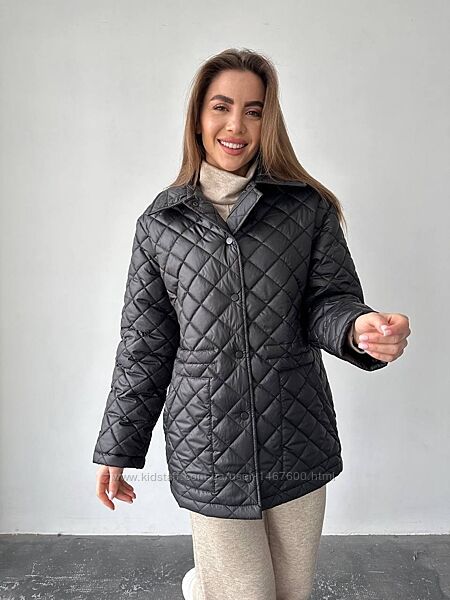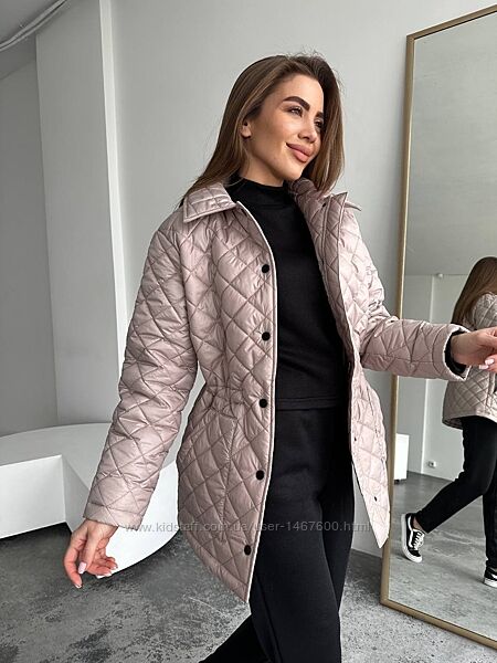 Куртка стеганая демисезоннаяФасон прямой свободный, акцент по талии можно выделить ( внутри резинка на кулисе регулируется)